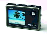 Другой разговор - карманный комбайн по имени Minox DM 1. Лишь чуть больше H10 от iRiver и, пожалуй, поменьше и полегче Palm’a (105x64x17 мм, 94 г), он сочетает в себе цифровой фотоаппарат (разумеется, с возможностью просмотра графических файлов, то есть еще и - цифровой фотоальбом), MPEG-4-видеокамеру (320х240x30 или 640х480х15 fps), диктофон (пожалуй, более того: цифровой звуковой рекордер, ибо позволяет писать звук не только в форматах mp3 или wma, но и в wav), веб-камеру и наконец (что, возможно, прикольнее всего) - довольно мощный фонарик на двух светодиодах, который работает не только в качестве подсветки при фото- и видеосъемке, но и автономно. Правда, в отличие от DMP-1, DM 1 не имеет радиоприемника и не читает книжек, и одному богу известно, что помешало добавить в DM 1 и эти стандартные функции. Зато имеет встроенный (что называется, контрольный) монодинамик.