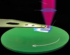 В качестве линз для нераспространяющихся волн были выбраны плазмонные линзы из нескольких концентрических кругов на тонком слое серебра с отверстием посередине. Массив из шестнадцати таких линз закрепили на конце устройства, напоминающего коромысло винчестера, и фокусировали на них луч ультрафиолета. В первых экспериментах скорость поверхности диска под головкой достигала 12 м/с, а сама головка парила на высоте 20 нм над его поверхностью и рисовала штрихи толщиной 80 нм. Это делает метод эффективнее альтернативных технологий вроде литографии электронным или ионным пучком. К тому же ничто не мешает, уверены изобретатели, достигнуть разрешения 5–10 нм, довести число параллельно работающих линз до нескольких тысяч и повысить скорость вращения диска.