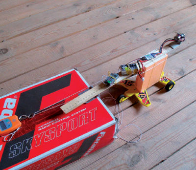 Теперь предстояло как-то разместить на борту электронику. Можно было, конечно, прилепить ее на двухсторонний скотч, но у фирменного тряпочного "прототипа" все это хозяйство было убрано в обтекаемую пластмассовую гондолу. Мне захотелось такую же. Вспомнил про воздушный корабль Робура-завоевателя (см. одноименный роман Жюля Верна), - его корпус был сделан из папье-маше. Форму для гондолы я вылепил из пластилина и начал обклеивать ее кусочками ватмана: понадобилось пять-шесть слоев.