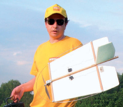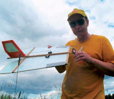 Полеты следующего дня показали, что я неправильно выбрал центр тяжести для модели - 15 см от передней кромки крыла; с неработающим двигателем самолет сносно планировал, но стоило включить движок, как хвост заваливался вниз, и модель норовила сделать мертвую петлю.
