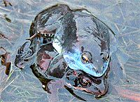 Позапрошлой весной автор этих строк оказался во время нереста остромордых лягушек возле небольшого нерестового водоема - пруда среди заросших дубами холмов. Были сумерки - "час меж собакой и волком". На мелководье собралось несколько тысяч самцов лягушек. В это время они преображаются благодаря ярко-голубой брачной окраске. Песня самца остромордой лягушки похожа на клокотание кипящей крупными пузырями воды. Многоголосый хор нескольких тысяч самцов сливался в невероятный гул. Этот объединенный голос тысяч особей разносился по окрестным холмам, созывая неторопливых, разбухших от икры самок…