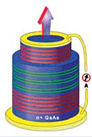 В новом светодиоде греческих ученых поляритоны возбуждаются, как и в обычном светодиоде, электрическим током. Работает светодиод при температуре всего -38 градусов Цельсия, которая уже не так безнадежно далека от вожделенной комнатной температуры. Светодиод изготовлен из арсенида галлия с добавками индия и алюминия с помощью обычной эпитаксии молекулярным пучком. Он имеет слоистую цилиндрическую структуру, образующую резонансную микрополость, которая настроена так, чтобы эффективно удерживать поляритоны. Стенки полости представляют собой квантовые ямы для экситонов, которые тесно взаимодействуют с фотонами. Электрический ток течет вдоль цилиндра, а фотоны в результате излучаются прямо из полости.