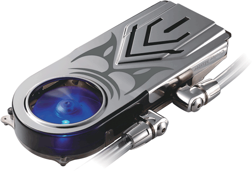Система охлаждения для видеоадаптеров, построена по гибридной схеме, используется и воздушное, и жидкостное охлаждение. По оценкам разработчика, параллельная работа вентилятора и жидкостного модуля дает выигрыш до 20° по сравнению с аналогичными по назначению воздушными системами. www.coolermaster.com