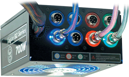 Серия блоков питания. Мощность БП – 500–1300 Вт, такой блок способен питать мощную систему со спарками видеоадаптеров, четырехъядерными ЦП и др. www.tagan.ru