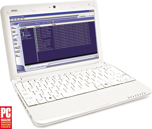 На 10-дюйм экране Wind удобно и блуждать в Интернете, и работать с текстом. Клавиатура, хоть и не полноразмерная (92 %), но все же больше, чем у ASUS EeePC 900 (84 %). Однако клавиши мыши очень маленькие и узкие. Что касается его компонентов, то они в основном удачные: 80-Гбайт жесткий диск, три порта USB, устройство чтения карт памяти четырех стандартов (SD, MS, MS Pro, MMC), выходной разъем VGA, порт Ethernet и 1,3-Мпиксел Web-камера, а также адаптеры Bluetooth и WiFi 802.11g.