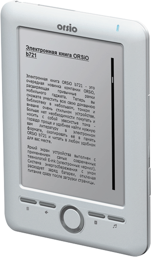 Устройство для чтения электронных книг оборудовано 5-дюйм экраном на базе матрицы E-Ink Vizplex (800x600, 200 точка/дюйм), процессором Samsung S3C2440 ARM9/400 МГц, 64-Мбайт памятью SDRAM для системных нужд и 512-Мбайт флэш-памятью NAND (для хранения книг). Имеется гнездо для карт памяти SD, порт Mini USB 2.0. Габариты устройства – 149x108x10,3 мм, масса 170 г. Как заявляет изготовитель, «читалка» совместима с большинством форматов электронных книг. www.orsio.ru