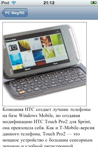 Журнал PC Magazine/RE объявляет о выпуске программы «Читаем PC Magazine/RE» для платформы Apple iPhone OS. Эта утилита совместима с iPhone и iPod touch, позволяет оперативно отслеживать новости сайта PC Magazine/RE и читать материалы ресурса в формате, оптимизированном для просмотра на экране мобильного устройства.
