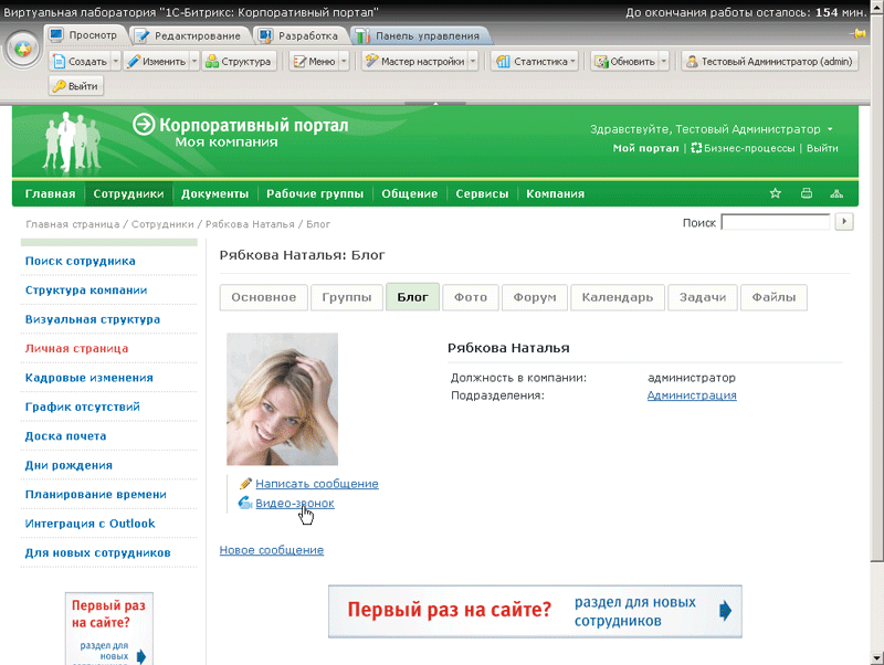 Компания «1С-Битрикс» анонсировала выпуск новой версии «1С-Битрикс: Корпоративный портал 9.0», готового Web-комплекса для управления корпоративными коммуникациями, организации совместной работы сотрудников и автоматизации бизнес-процессов в компаниях СМБ. Одна из основных особенностей ее новой версии – функции видеоконференцсвязи.
