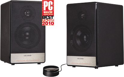 Настольная мультимедийная акустическая система, выполненная в классическом стиле 80-х гг. Колонки имеют корпус из фибролита, алюминиевая плашка в нижней части передней панели и акустическая ткань в крупную сетку, которой защищены динамики, делают колонки весьма стильными и солидными, специальные резиновые ножки при установке на стол обеспечивают акустическую развязку. Активные колонки Microlab H-11 двухполосные (ВЧ-динамик – купольный твиттер из титана и 4-дюйм СЧ/НЧ-динамик), фазоинвертор находится на задней панели. www.microlab.com