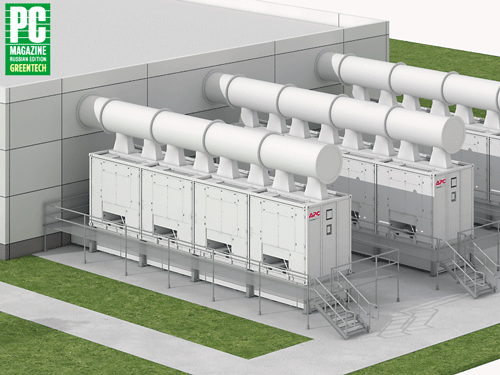 Масштабируемая система охлаждения для ЦОД. Конструкция состоит из отдельных модулей мощностью 50 кВт, которые могут объединяться в группы до четырех (200 кВт) или восьми (400 кВт) единиц. Система использует методы косвенного испарения и прямого воздушного теплообмена, автоматически переключаясь между ними и обеспечивая наиболее эффективный вариант. Оборудование размещается за пределами ЦОД. www.apc.ru