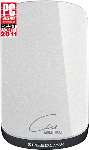 Беспроводная полисенсорная мышь. Скользя пальцем по поверхности мыши, можно прокручивать содержимое окон; мышь позволяет задействовать жесты – движения пальцами, активирующие заранее заданные функции. Разрешение оптического сенсора – 1000 точка/дюйм, радиус действия – 8 м (диапазон 2,4 ГГц), имеется аппаратный выключатель. Мышь подходит как для правшей, так и для левшей. www.speedlink.ru, www.grafitec.ru