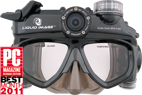 Маска для подводного плавания, снабженная цифровой камерой. Идея, которую надо было бы реализовать давно, всякий любитель дайвинга оценит такое устройство. Разрешение матрицы – 5 Мпиксел, чувствительность – ISO 100–200, емкость памяти – 64 Мбайт, имеется гнездо для карт памяти microSD/SDHC, угол обзора объектива – 135°. Есть ЖК-дисплей для управления камерой, встроенный микрофон. Глубина погружения – 40 м. Работает от четырех батареек AAA. www.liquidimageco.com, www.x-try.ru