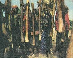 На другой день я ломал голову, пытаясь понять, что означают узоры на фронтонах пустых амбаров. Тут были барельефы с изображением родовых химер, красные, черные и белые мистические треугольники. В двух или трех местах я натыкался на тайники, скрывавшие крошечные голубые чаши. Посторонним их видеть не разрешается. Эти чаши догонские шаманы используют при отправлении обряда погребения.