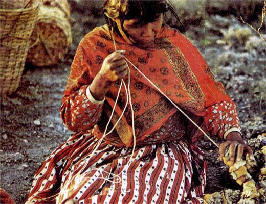 Иногда вдоль дороги выстраивается десятка полтора домишек, это тогда называется «городом». В нем есть обычно несколько лавок, пивная, бензозаправочная станция. Средняя семья навахо держит несколько овец, две-три коровы. Если хватает воды — что в пустынных этих местах редкость,— заводят огород. Таким людям еще повезло: восемьдесят процентов навахо — безработные. А трое из каждых четверых работающих состоят в различных службах федерального Бюро по делам индейцев. Индейцы не считают это благодеянием: правительство США обязалось платить им за отобранную землю — так записано в договорах между индейскими племенами и правительством. Большинство же белых американцев твердо убеждены, что деньги эти индейцы получают ни за что ни про что, что они и так разбогатели в последнее время от продажи нефти и угля, которых так много в резервациях.