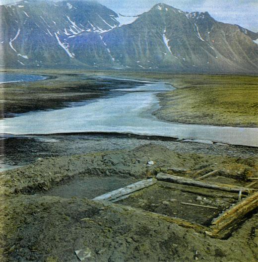 Исследуя остатки этого дома, мы смогли отчетливо представить те условия, в которых жили шпицбергенские зимовщики XVI века. Это был средних размеров дом площадью более двадцати квадратных метров, состоявший из двух половин: теплой жилой избы и холодных сеней. Интересно, что стены дома были набраны в каркас. Это обычный прием в северо-русском и сибирском домостроении: стены дома собираются из бревен, концы которых затесывают с двух сторон и вставляют в пазы вкопанных в землю угловых опорных столбов.