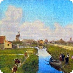 Голландия: канал, ветряные мельницы, плоские тучные луга, где пасутся тучные коровы. Зрителю предлагалось дополнить картину тем, что он читал о Голландии — то ли в журнале «Вокругъ свъта», то ли в книжке «Серебряные коньки».