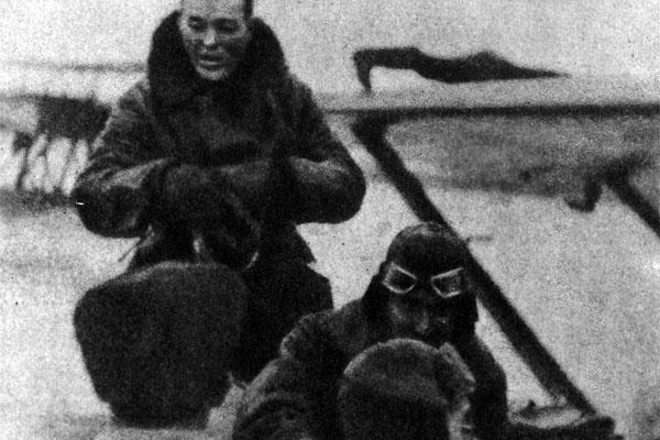 — Мы только вернулись из Америки и несколько раз встречались с Леваневским и его экипажем: штурманом Виктором Левченко, вторым пилотом Николаем Кастанаевым, механиками Григорием Побежимовым и Николаем Годовиковым, радистом Николаем Галковским... Улетали они вечером. Я только помню, что у ребят было почему-то грустное настроение, — сказал Байдуков. — Старт прошел отлично. Поначалу все было очень хорошо, вплоть до полюса...