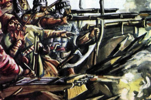 Победоносный поход сравнительно небольшого отряда Ермака, покорение им обширного Сибирского ханства иногда сравнивают с ошеломляющими завоеваниями Кортеса и Писарро в Новом Свете: горстка смелых и прекрасно оснащенных технически европейцев разгоняет громом орудий несметные толпы туземцев, покоряя целые царства. Однако в случае с Ермаком такое сравнение не годится. Сибирское ханство было таким же феодальным государством, как и Московское царство, хотя и находилось на несколько более низком экономическом уровне и включало в себя патриархальные общины лесных и степных племен. Кроме того, феодальные усобицы в Сибирском ханстве, а также слабая заселенность его обширных территорий вряд ли давали возможность хану Кучуму собрать в единый кулак достаточно большие силы. К тому же и само это войско было разложено междоусобными стычками. Дружина Ермака, напротив, была единым организмом, испытанным в борьбе с племенами Приуралья, не раз покушавшимися на все расширяющееся «царство» Строгановых, и каждый из бойцов представлял собой самостоятельную боевую ценность. Казаки — профессиональные военные — в совершенстве владели всеми видами оружия, имели опыт войны и с европейцами, и с азиатскими армиями. Что же касается вооружения, то тут наблюдалась разница, опять-таки не столь разительная, как поначалу может показаться. Чем могло быть вооружено Кучумово воинство? Из оружия ближнего боя это были копья, дротики, сабли, топорики, булавы, кистени, ножи и кинжалы. Метательным оружием служил лук, сложный, клееный, составленный из нескольких кусков дерева, усиленный роговыми пластинами и сухожилиями. Это мощное оружие на расстоянии метров в сто могло поразить насмерть даже бойца, защищенного кольчугой. Защитное вооружение состояло из кольчуг, пластинчатых доспехов — куяков, зерцал, кольчужно-пластинчатых бехтерцов, юшманов, стальных наручей, поножей, шлемов, кожаных, плетеных и стальных щитов. Отборные всадники защищали своих боевых коней металлическими доспехами — налобниками, попонами. Тесные этнические, культурные, торговые, династические связи сибирских ханов со Средней Азией позволяют говорить о широком импорте оружия из ведущих центров Среднего Востока. Например, шлем, по преданию, принадлежавший самому Кучуму и ныне хранящийся в Оружейной палате, представляет собой выдающееся по качеству и отделке изделие лучших иранских мастеров. Оружие местной выделки уступало качеством и разнообразием привозному, но в общем было вполне приемлемым. Знали в Сибирском ханстве и об огнестрельном оружии благодаря тем же южным связям. Более того, вероятно, там имелось несколько образцов пушек и ружей, но были они лишь престижной диковинкой. А что у Ермака? Тела его бойцов прикрывали те же кольчуги, куяки, бехтерцы, шлемы и русской выделки, и европейской, и восточной. Похожи были и сабли, копья, булавы, кистени, луки и самострелы. Но вот ружьями да пушками, их количеством, в данном случае прямо перешедшим в качество, войско Ермака выгодно отличалось от сибирцев. Пушки, пищалей, дробовые ружья на отряд в 1000 человек давали огромную по тем временам огневую насыщенность. Причем, кроме фитильных пищалей, были и испанские аркебузы — гораздо более скорострельные и надежные колесцово-кремневые ружья. Имелись и популярные в Европе многоствольные орудия, н