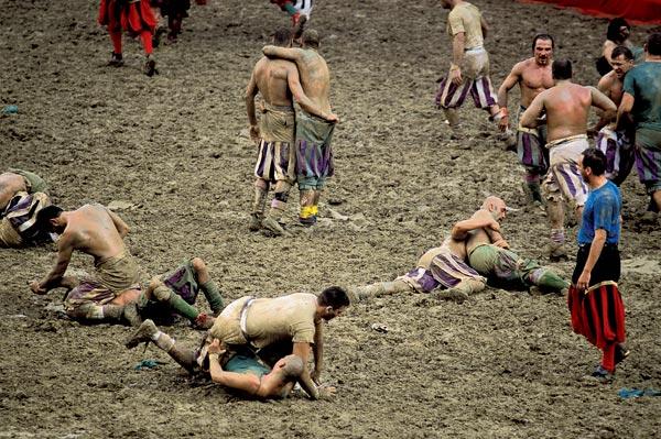 Понадобились тысячелетия, чтобы футбол приобрел нынешние строгость и тактическую изощренность. Но и древние его виды не забыты. Находится немало желающих побороться за мяч, ничем не стесняя себя. Фото вверху: IMAGE FORUM/EAST NEWS