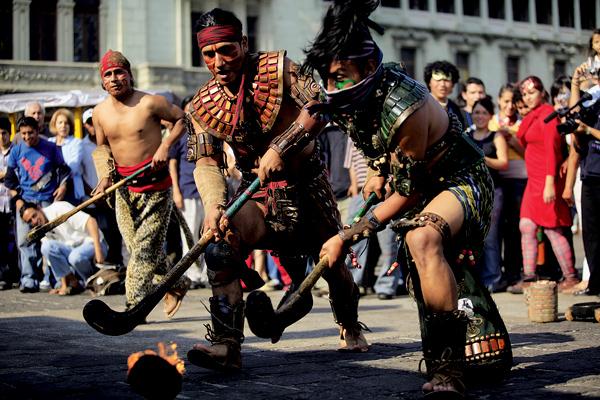 В ходе церемонии открытия в Гватемале 119-й сессии МОК, местные спортсмены продемонстрировали традиционную игру индейцев майя в мяч — уламу. Одна из разновидностей уламы — с горящим мячом. Фото: REUTERS