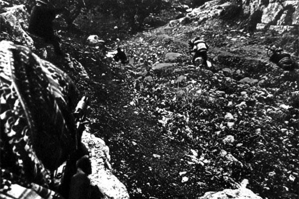 Мы шли цепочкой: впереди фидаин, за ним Абу Джордж, я, фоторепортер Морольдо, Абу Абед и за ним другой фидаин. Дорога была неровной, я то и дело спотыкалась о камни, а зажигать фонари было нельзя — нас могли заметить. Трижды пришлось перепрыгивать через ручей, один раз пробираться запутанным проходом в колючей проволоке и перебегать по узкому бревну, перекинутому через сточную канаву. Место было выбрано с большим искусством, человек чужой почти наверняка не найдет сюда дороги, даже если он уже побывал здесь. Я, например, запомнила только узкую дорогу с кривыми колеями, круто взбиравшуюся на вершину холма. Не доходя до этой вершины, мы остановились. «Обождем сигнала», — тихо произнес тот фидаин, что шел впереди. Скоро раздалось негромкое птичье посвистывание, и мы двинулись дальше. Фидаины довольно часто пользуются таким способом сообщения, недаром в тренировочных лагерях их обучают искусству подражать свисту чуть ли не всех известных птиц. Учат их подражать и собачьему лаю — вещь совершенно необходимая при окружении какого-нибудь кибуца или при подходе к деревне.
