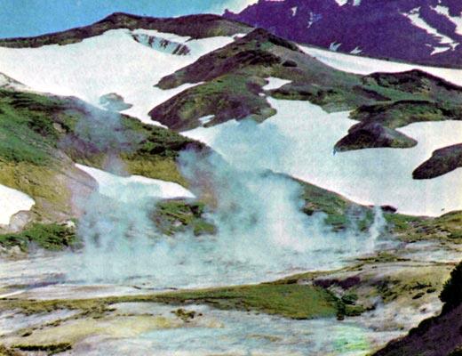 — Наш Узон уже прошел стадию Долины гейзеров,— говорил Карпов.— Его активность проявляется в спокойном постоянном выделении паров, газов и горячих растворов из недр земли. Но от этого он не стал менее интересным. Напротив. Здесь, как оказалось, протекают процессы современного рудообразования. Некоторое время назад это обнаружила руководительница нашей лаборатории Софья Ивановна Набоко. Вы понимаете, что это значит?