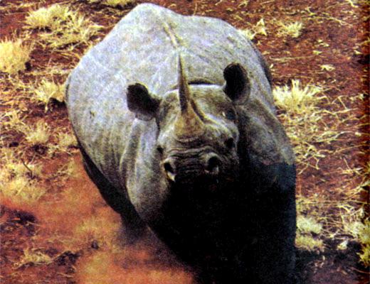 В начале XIX века стада черного носорога жили на обширных территориях Центральной, Восточной и Южной Африки. Сегодня в Южной Африке его уже нет. В Замбии, где до недавнего времени обитало самое большое стадо черных носорогов — восемь тысяч голов,— их стало вчетверо меньше. В Кении насчитали менее тысячи. Так за что же столь беспощадно с ним расправился человек? А за то... Не носи на голове дорогостоящее украшение, то бишь рог! Ведь только он и интересует охотника-браконьера.
