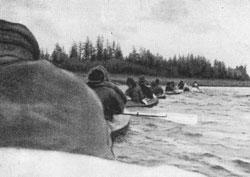 30 июля. Вечером добрались до знаменитого Чамбинского порога. Здесь весной 1927 года едва не утонул Кулик, оборвавшийся с берега и упавший в воду при протаскивании лодки вверх, по течению. Кстати, кинооператор, снимавший этот момент, хотел броситься на помощь Кулику, но боязнь потерять такой исключительный кадр заставила его остаться на месте И с удвоенной энергией продолжать процесс съемки. Кадр действительно вышел очень эффектным. Хорошо, что Кулик умел плавать.