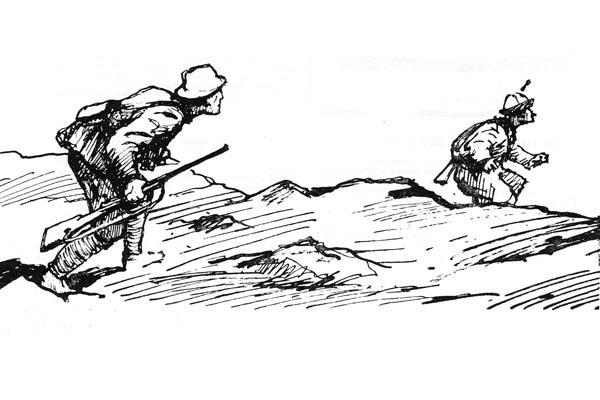Мы и решили воспользоваться этим. Узнав в Пржевальске, что в одном только Каракольском ущелье обнаружены четыре гнезда этих птиц, мы с напарником моим Г.А. Самсоновым пригласили принять участие в лове двух замечательных охотников — Курмамбаеаа Шервахуна и Матмусаева Турдамахмета. Это уже не молодые, но очень крепкие и ловкие люди, прекрасные стрелки и неутомимые ходоки по горам.