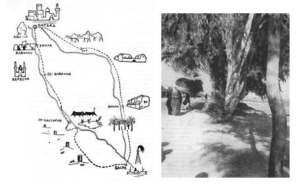 Перед отъездом в Ирак мы перечитали внимательно все брошюры и книги, какие удалось достать об Ираке, но, увы, представление о стране у нас сложилось не совсем правильное. В этом виновата и кинокартина «Багдадский вор», и поэмы о кораблях пустыни, и рассказы о бедуинах в развевающихся бурнусах и последнем глотке воды в раскаленной пустыне. Со всеми этими атрибутами экзотики нам почти не пришлось столкнуться в Ираке. В сегодняшнем Ираке пленяет совсем другое. Это страна очень современная. Современная не по достижениям техники и культуры — это дело завтрашнего дня, — а по настроению. Ирак молод. И вот эта молодость, родившаяся всего два года назад, в дни революции, и показалась нам основной чертой страны, чертой, за которой как-то поблекли и сникли экзотические красоты. Новое поколение хозяев Ирака ведет тяжелую борьбу, чтобы вытащить страну из той отсталости и темноты, куда ее в течение многих лет усердно заталкивали многочисленные правители.