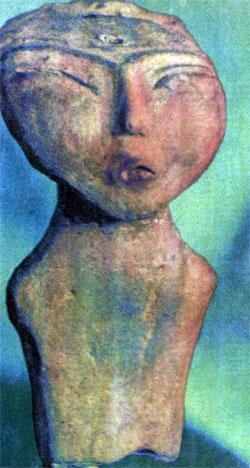 В следующем году в том же поселении найдена была женская скульптура. Задумчиво и спокойно смотрело юное лицо с гордым разлетом бровей. «Кондонская Венера» — под таким именем вошла она в сокровищницу мирового искусства. Как показал анализ, скульптура была создана в то же время, когда появились на скалах Сакачи-Аляна страшные личины. Словно древние художники, преклоняясь перед всесильными «повелителями» стихий, высекая на скалах их страшные личины, в то же время уже осознали величие красоты человека и как бы противопоставляли ее таинственным и слепым силам природы...