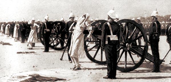 Для устрашения местного населения британцы жестоко казнили вождей сипаев. Их привязывали к пушечным жерлам, и орудийный залп разносил тела мятежников на части