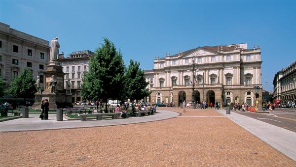 Площадь перед знаменитым собором Duomo, пожалуй, — самая парадная в Милане, столице богатой Ломбардии. На широком пространстве собрано все, что соответствует образу туристической Италии: готическая архитектура огромного собора, множество голубей, праздная толпа и ощущение полной беззаботности, столь естественное для этой страны. Но сердце Милана не здесь, хотя оно и очень близко. Стоит от Duomo пройти всего пару минут по мозаичному полу торговой галереи Виктора Эммануила II, как попадаешь в другой мир. Там тоже площадь, только небольшая. Неба и солнца уже не так много. Как и людей. 3венят трамваи, а обстановка почти будничная. Кроме памятника и арки с перспективой на галерею, кажется, нет ничего выдающегося. Однако впечатление обманчиво: именно в этом месте, напротив каменного гения, находится одно из чудес света — Teatro alia Scala.