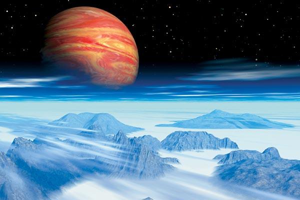 «Горячий Юпитер» и его каменные спутники — экзопланеты земного типа. Вполне возможно, что есть системы, в которых обитаемы «луны», а не «земли»