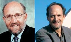 Профессор М. Майор из Женевского университета (Швейцария), открывший в 1995 году первую экзопланету (слева) и профессор Дж. Марси из Университета Калифорнии в Беркли (США) возглавляющий наиболее успешную группу «охотников за экзопланетами»