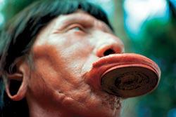 Деревянные пластинки, втулки из смолы или металла индейцы вставляют в отверстия, сделанные в мочках ушей и нижних губах. Бразилия