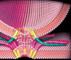 Липосома в процессе слияния с клеточной мембраной (компьютерная модель)