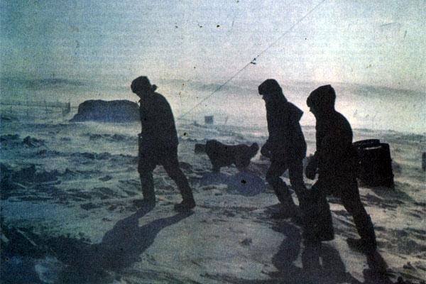 Вот уже несколько дней я живу с охотоведами и биологами на берегу Бикады-Нгуомы. Изба заметена сугробами по самую крышу. Григорий Дмитриевич сидит на спальном мешке, обхватив руками колени. Покуривая и улыбаясь, он вспоминает, как овцебыки появились на Таймыре. Якушкин — кандидат биологических наук, заведующий лабораторией акклиматизации овцебыков, и ему довелось участвовать в сложной операции по перевозке животных через океан. Рассказывая, он посматривает куда-то в сторону либо вдаль — я привык к этой его манере, вероятно, так ему легче вспоминается.