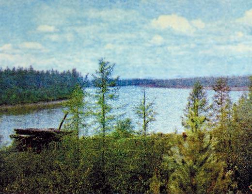 ...Июльское ненастье в Улье — сущее бедствие. Я делаю круги по поселку, снимаю с разных сторон памятник москвитинцам и чувствую незавершенность своих впечатлений. Надо, надо пробиться вверх по Улье и потом спуститься вниз, чтобы побывать в районе древнего плотбища, где стучали топоры москвитинцев. Володя уже оборудовал моторку с хорошим тентом для плавания в дождь, как вдруг погода подарила нам небо без единого облачка.