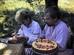 — Ежели б в народе забыли, как лапти плести — как это случилось с золотошитьем и плетением из соснового корня, которые не возродишь уже,— то и ремесло берестянщика так же быстро сошло бы на нет. Вовремя спохватились, старики свое умение молодым передавать начали, кто желание имеет и способности к ремеслу. В народе пока таких знатных мастеров немало. Видели б вы поставцы — берестяные бутыли, которые плетет Чудинов. Или какой тонкий орнамент из разноцветной бересты выплетает Виктор Иванов на своих шкатулках. Красота! Но верх мастерства — это берестяные скульптуры Василия Александровича Костылева...