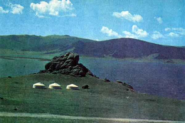 Я смотрел, как волнуется голубое сокровище наших гор — озеро Хяргас-Нур. Утром солнце медленно поднимается из глубины озера. Ночью огромное небо со звездами и луной опускается в озеро.