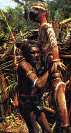 — Да, да, Ян, — продолжал он развивать тему, когда мы уже были в мэре. — Большие намба вошли в контакт с белыми лишь во время войны на Тихом океане. Сейчас туристские бюро отправляют к ним группы только самых богатых туристов. От Норсупа до главной деревни намба Амок можно дойти пешком за четыре-пять часов через горы и джунгли. И это племя полюбило туристов. Намба берут их доллары, продают им попорченные фигурки предков и требуют платы за фотографирование. Этот красавец, судя по его наряду, тоже явился на заработки. В таком одеянии они ходят только у себя, а когда идут работать на плантацию или в миссию, одеваются нормально — в рубашку и шорты. А этому наверняка не захотелось вкалывать, вот он и обольстил тебя. Хотя туристские проспекты и рекламируют намба как добросердечных, ничего не знающих о большом мире детей природы, их культура и традиции уже меркнут. Эту небольшую общность людей разъедают новые желания, идеи, жажда, вещей, которые они видят на побережье. Я думаю, что их самобытность исчезнет в самом ближайшем будущем, намного быстрее, чем у малых намба, которые оказались куда устойчивее.
