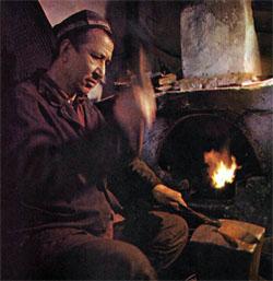 Прищурив глаза, Абдулатто глядел в горн, на пляшущие красные язычки пламени, словно ожидал увидеть одному ему известные краски и оттенки. Тысячеградусное марево полыхало внутри печи; пламя очистило лежащие рядком металлические полосы, и они наливались ровным бронзовым светом. Эти полосы-заготовки — в большинстве своем вышедшие из употребления, отбракованные на производстве подшипники, которые получает артель через контору Вторчермета. Абдулатто и другие мастера вполне довольны качеством этой стали, хотя и скучают по старым дедовским временам, когда сталь варили особым шахриханским рецептом, переходившим из поколения в поколение. Но, к сожалению, многие секреты этого сплава утеряны...