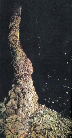 С первым весенним дождем влажная духота заполняет подземные переходы, побуждая термитов подняться в верхние этажи. В непроницаемом куполе термиты-рабочие пробивают отверстия. К ним устремляются крылатые, которые ютились до сих пор в самых отдаленных закоулках гнезда, страшась свежего воздуха и дневного света. Неудержимый поток крылатых термитов выносится наружу, увлекая за собой рабочих и солдат из охраны амбразур на поверхность купола. Термиты взлетают. Зов продолжения рода сильнее страха перед смертельными опасностями! (1 В момент вылета термитов поедают все их заклятые враги, бегающие, ползающие и летающие — от муравьев и ящериц до птиц и рыб, — а на окраинах деревень их поджидают домашние птицы и животные. Дело в том, что крылатых перед выходом откармливают как на убой самой лучшей пищей, потому что первое время в новом гнезде им приходится довольствоваться прежними «запасами» — пока не подрастут рабочие-фуражиры. Даже люди не упускают аппетитную добычу: в тропических странах на термитниках устанавливают конусовидные ловушки. Упитанных жареных термитов подают к столу как деликатес.)