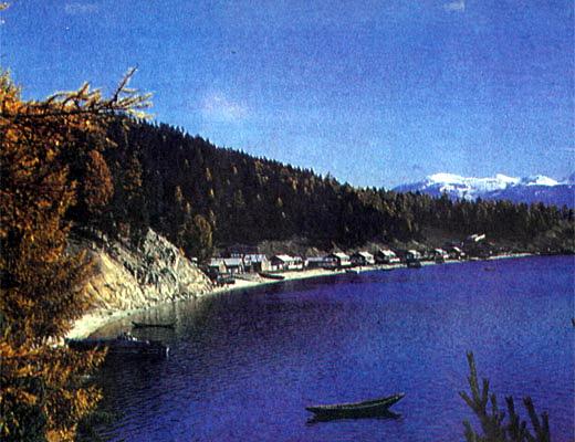 Яркость заснеженных гольцов, золото осенней тайги, просторы небес — то совсем ясных, то облачных, то хмурых, наконец, сам Байкал, постоянно меняющий свои оттенки,— все это создает такую многообразную цветовую гамму, что поневоле вспоминается старая байкальская легенда, описанная в книге М. Жигжитова «Подлеморье».