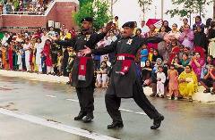 Перед началом события два человека – старик и средних лет мужчина – заводили толпу. Размахивая флагами, они организовали довольно стройные крики «Да здравствует Пакистан!». Весь же последующий ритуал был строго регламентирован и отрепетирован. И на индийской, и на пакистанской стороне все детали совпадают – ведь в момент снятия флага пограничникам надо оказаться у флагштока одновременно.