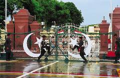 Конечно, специалистами в межнациональных конфликтах мы себя считать не можем, но этот ежедневный ритуал с разматыванием флага и вызывающими взглядами, бросаемыми на противоположную сторону, эта каждодневная маленькая война показались нам своеобразной квинтэссенцией пакистано-индийского конфликта. Как он может кончиться? Зачем тогда так драить до блеска ботинки? И что скажут зрители?..
