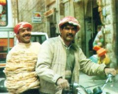 Выхожу на балкон. Пахнуло свежей выпечкой — значит, начала работать маленькая пекарня напротив. Я люблю туда заходить. Там никогда не бывает «ночного» хлеба. При вас пекарь вынимает из печи золотистые лепешки с чуть обгорелыми краями. Работают здесь слаженно: один просеивает муку, другой месит и разделывает тесто. Во всех жестах — точность и грация, вековой наследный опыт. Обжигающе горячие лепешки сирийцы покупают на вес, дюжинами, и тут же раскладывают прямо на земле, чтобы остыли.