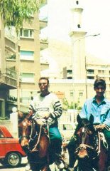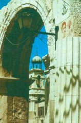Недалеко от Мердже стоит здание, построенное в мавританском стиле с трехцветным флагом над входом — это парламент. А в двух минутах ходьбы шумит главная торговая улица — Салхия — здешние «Елисейские Поля», где больше праздных гуляк, чем покупателей. Променад начинается от памятника Асаду. Он громаден и безвкусен, как вся сирийская монументальная скульптура. Хотя ислам запрещает изображать все живое, дабы не сотворить кумира, но кто сосчитает, сколько портретов и бюстов президента украшают улицы города? Кстати, недалеко от дома, в котором я живу, — военное ведомство с портретом президента Асада, закрывшим весь фасад. Иногда вывешивается целая гирлянда портретов, словно неразрезанные почтовые марки.