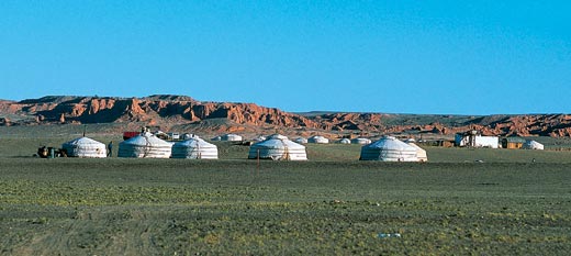 По сей день передвигаться по монгольским дорогам можно только на внедорожной технике и все-таки с проводником, знающим местный язык (монголы в большинстве своем не говорят ни по-русски, ни по-английски). Говоря «дороги», я подразумеваю «направления», то есть беспорядочно пересекающиеся накатанные колеи, каждая из которых в любой момент может прерваться в «чистом поле». Асфальтированных же шоссе в стороне всего два, вернее – полтора. Одно, еще не достроенное, высокопарно называется Дорогой тысячелетия и должно вскоре перерезать страну поперек, а второе ведет от северной границы к Улан-Батору. С точки зрения человека западного, но намотавшего уже несколько сот километров по Монголии, ее столица – просто оазис цивилизации, другое государство, в котором живут другие монголы. Полиция борется с рекламой спиртных напитков на уличных щитах и в общественном транспорте. Вещают музыкальные радиостанции FM-диапазона, и среди них даже одна русскоязычная – «Пульс-радио». А в главном буддийском монастыре страны, Гандане, на заднем дворе под присмотром просветленных и умудренных лам маленькие «ламята» в длинных красных платьях играют в футбол. Но стоит только миновать юрточные окраины…